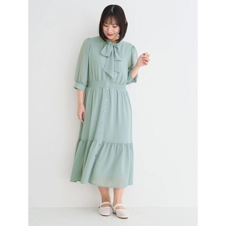 【WEB限定】シフォンジョーゼット5分袖ボウタイワンピース