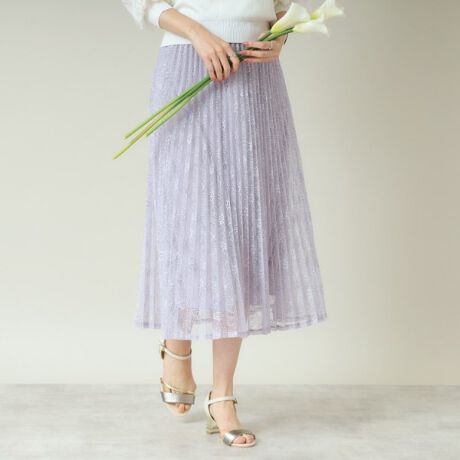 春のコーディネートに欠かせないレース素材のプリーツスカート。