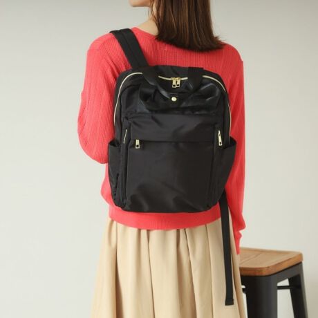 マチ幅の広いスクエア型でたっぷり収納のボックスリュック。