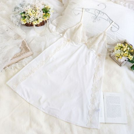 両サイドにはバストとお揃いの刺しゅうレースを裾までふんだんにあしらい、ポイントでお花のシアーアップリケを添えてひときわ華やかで繊細な美しさに。バックスタイルにはストレッチレースを使用して、細部までこだわりを詰め込みました。