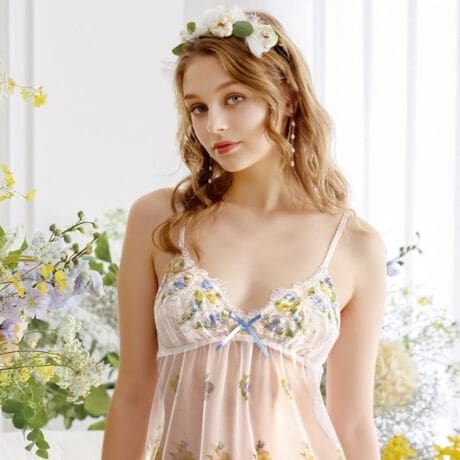 身生地のレースには全面にお花をプリントして、大人の可愛らしさをプラスしました。