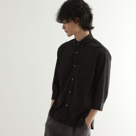 タイト目のシルエットで異素材の衿裏、7分袖デザインなどギミック感のあるデザインに仕上げました。