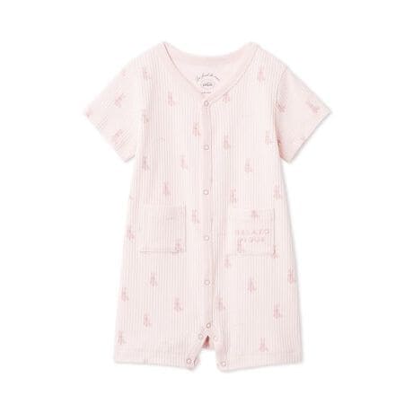 淡く優しいカラーリングに、子どもたちが大好きなぬいぐるみ柄をあしらったカットソーシリーズにうさぎモチーフが新登場。お座りしているうさぎの絵を総柄プリントした、半袖のBABYロンパースです。フロントポケットに発泡プリントのロゴをデザイン。ベーシックなアイテムなので、羽織りを合わせたりしてロングシーズンご使用いただけるのも魅力です。ルームウェアとしてだけでなく、ワンマイルウェア、保育園着、幼稚園着としてもおすすめです。色は全7色で、ウサギ柄のライトピンク、ベア柄のベージュ、キャット柄のラベンダー、ダイナソー柄のミントの他に、ONLINE限定カラーのパンダ柄のオフホワイト、ベア柄のピンク、ブルーからお選びいただけます。パウダーアニマルのシリーズと合わせたり、KIDSサイズと合わせてきょうだいでお揃いのコーディネートも可能。出産祝いなどのギフトにもおすすめです。