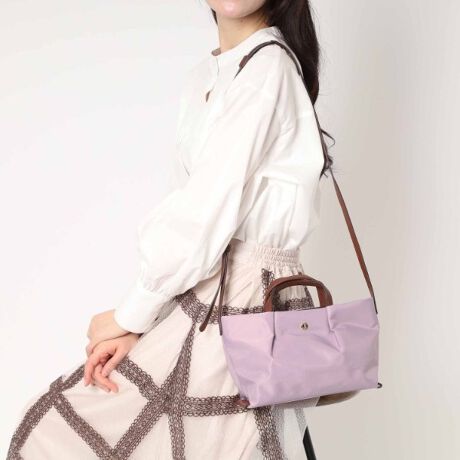 上品な光沢を持つナイロン素材と、手触りの良い柔らかい合皮を組み合わせて、上品さと使いやすさを両立させました。
