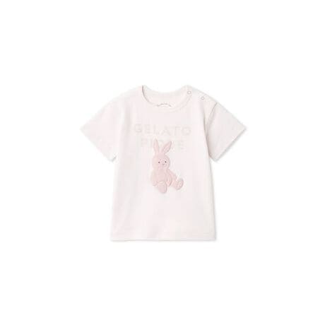 淡く優しいカラーリングに、子どもたちが大好きなぬいぐるみ柄をあしらったカットソーシリーズにうさぎモチーフが新登場。ウサギ、ベア、ダイナソー、パンダ、キャットと5種類のぬいぐるみに、ブランドロゴを組み合わせたBABYサイズのTシャツ。ぬいぐるみの絵柄はぷくっとした質感の発泡プリントで、足裏に‘P’のイニシャルが入っています。BABYサイズは肩のスナップボタンで着脱しやすく仕上げました。ルームウェアとしてだけでなく、ワンマイルウェア、保育園着、幼稚園着としてもおすすめです。色は全7色で、ウサギ柄のライトピンク、ベア柄のベージュ、キャット柄のラベンダー、ダイナソー柄のミントの他に、ONLINE限定カラーのパンダ柄のオフホワイト、ベア柄のピンク、ブルーからお選びいただけます。同シリーズのロングパンツとのコーディネートが可能です。同じ柄でロンTタイプのご用意もございます。