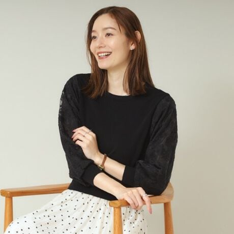 華やかなレース袖が大人可愛いニット。