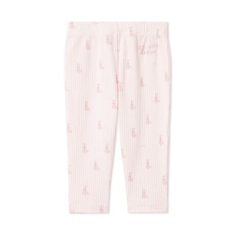 淡く優しいカラーリングに、子どもたちが大好きなぬいぐるみ柄をあしらったカットソーシリーズにうさぎモチーフが新登場。柔らかな風合いの生地に、ウサギ、ベア、ダイナソー、パンダ、キャットと5種類のぬいぐるみ柄をプリントしたBABYサイズのレギンスパンツ。ウエスト部分には、ぷくっとした質感の発泡ロゴプリントが入っています。ベーシックなアイテムなので、ロングシーズンご使用いただけるのも魅力です。ルームウェアとしてだけでなく、ワンマイルウェア、保育園着、幼稚園着としてもおすすめです。色は全7色で、ウサギ柄のライトピンク、ベア柄のベージュ、キャット柄のラベンダー、ダイナソー柄のミントの他に、ONLINE限定カラーのパンダ柄のオフホワイト、ベア柄のピンク、ブルーからお選びいただけます。同シリーズのロンTやTシャツとのコーディネートが可能です。