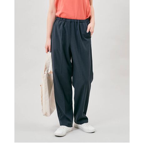 ウエストゴム仕上げの穿きやすさ、キレイめ素材とシルエットで、デイリーに活躍してくれるアイテムです。