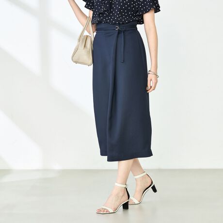 ・筒状の片側を折り込み、ラップ風にデザインされたスカート
