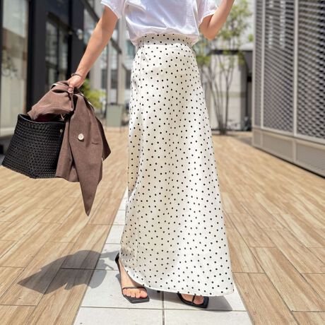 ウォッシャブルドットサテンナロースカート