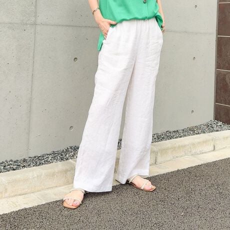 ・夏も快適に穿けるリネンのワイドパンツ