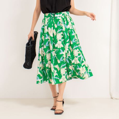 ・初夏らしい鮮やかなグリーンが基調のフラワープリントスカート
