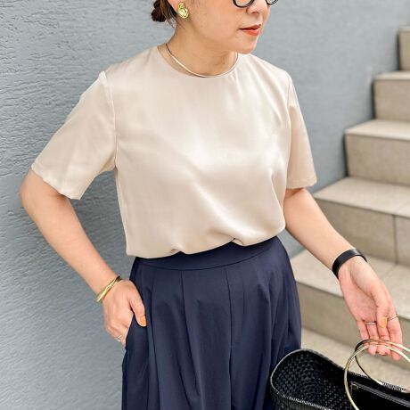 ・昨年からロングセラーのオトナサテン半袖Tブラウスをお客様の声を活かしてリニューアル!