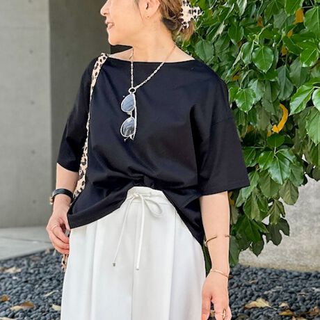・身幅はゆったり、袖丈長めで肩落ちデザインのリラックス感のある1枚