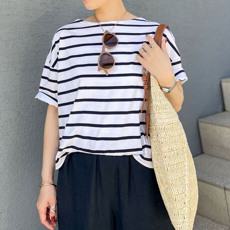 ・身幅はゆったり、袖丈長めで肩落ちデザインのリラックス感のある1枚
