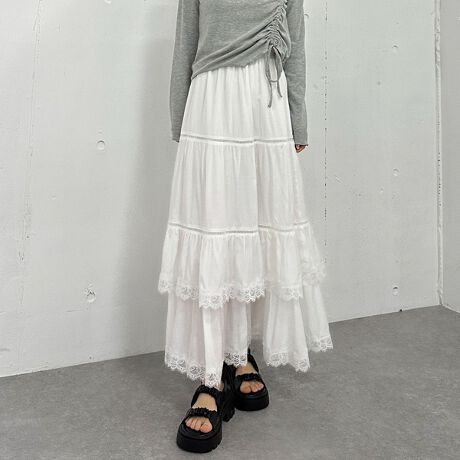 マルイウェブチャネル   /   アルシーヴ   /   すべてのスカート   /   スカート   /   レーストリミングティアードスカート
