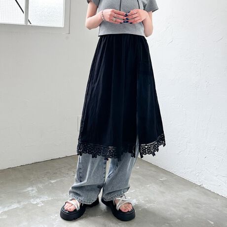 Tシャツをレイヤードしたり、スカートとしてパンツをレイヤードしたりとマルチに着こなせます。