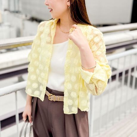 ・シアーなシャツをベースにした華やかな1枚