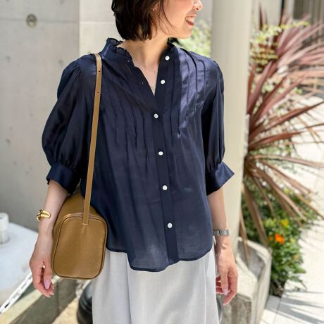 ・胸元のピンタックで立体感を出し、袖口と背中にたっぷりギャザーを入れて肌離れの良いデザインに