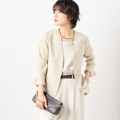 ・ドライタッチのトロ風素材を使用したノーカラージャケット