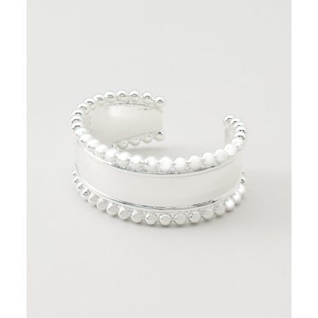 縁部分に小さなボールモチーフを並べた、手元にモダンなエッセンスを添えるバングル。
