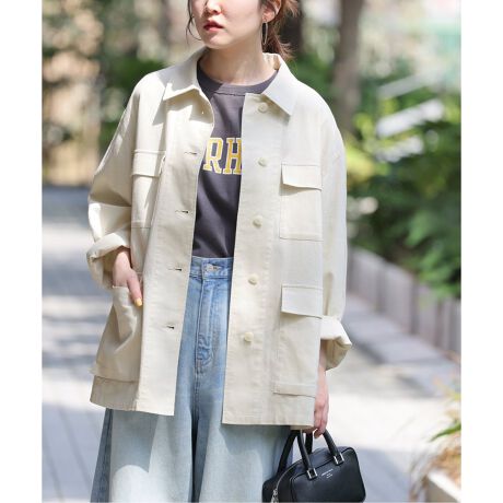 こなれ感漂うコットンリネン素材のアーミーブルゾン。