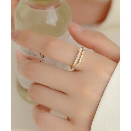 華奢なゴールドリングに、小粒のパールと煌めくストーンを贅沢にあしらった上品なデザイン。