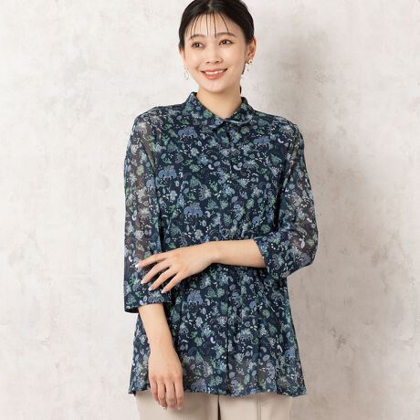 【人気アイテム・洗える・アンサンブル可能】花更紗柄チュールシャツ