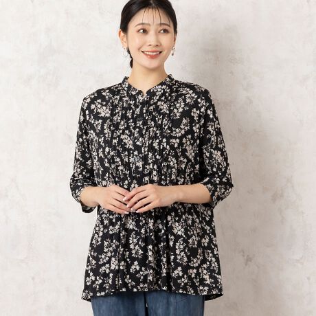 【人気アイテム・洗える】ミニフラワー ピンタックカットソー