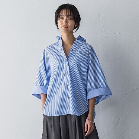 ワイドスリーブが印象的なフォルムを描く、ドルマンシャツ。