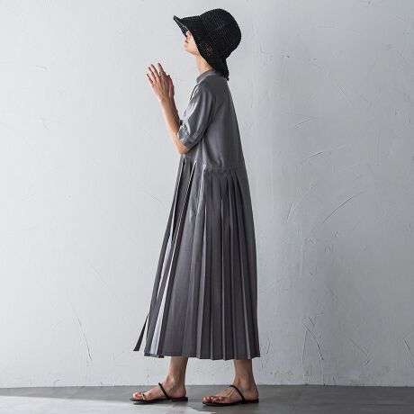 すとんと一枚でサマになる、サイドプリーツのシャツワンピース。