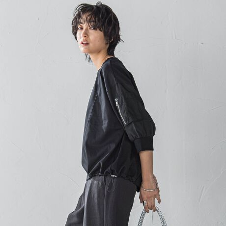 ワークポケット付きのボリュームスリーブがポイントのドッキングプルオーバー。