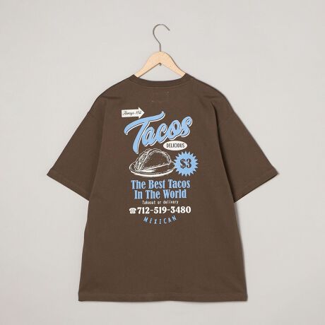 アメリカンなフードショップモチーフを大胆にプリントしたTシャツ。