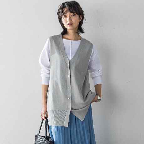 関連ワード:MAYSON GREY socolla メイソングレイ ソコラ 大人カジュアル 2025春夏 2025SS 春 春服 ベスト ニット レーヨン ナイロン ロング丈 Vネック キレカジ 気温15度~20度におすすめ 母の日
