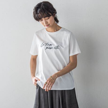 繊細な手書き風メッセージがポイントのロゴTシャツ。