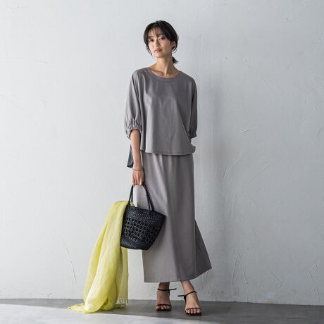 【新色追加】ハーフドルマンスリーブスカートセットアップ≪洗濯機で洗える≫