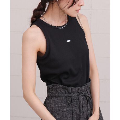 ロゴプレートがきらりと目を惹くアメスリタンクトップが登場!伸縮性のあるリブニット素材が程よくフィットして快適な着心地です。アメリカンスリーブの仕様でヘルシーな肌見せができ、またカップ付きなので1枚で着られるのも嬉しいポイント。