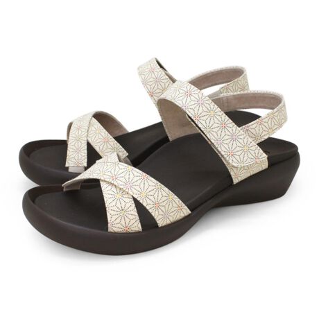 【日本人の足に優しいサンダル】疲れにくさを追求した日本人の足に寄り添うシリーズ「リゲッタ」から和柄サンダルが新発売。【こだわりの日本産ブランド】下駄を見直し、人間工学に基づいたアイディアで再設計されて誕生したブランド「リゲッタ」【人気のサンダルシリーズ】コロンと丸みを帯びたフォルムが印象的なソールと、クロスベルトがスタイリッシュなサンダル【新しい和柄デザイン】ベルト部分は可愛い麻の葉柄。和モダンで夏コーデはもちろん、着物や浴衣コーデにも最適☆【ラウンドトゥでつま先ゆったり】丸いつま先形状がちょうどいいゆったり感。締め付け感がなく、足がくつろぐ履き心地。【スイスイ歩くローリングカット】つま先に少しの力を加えるだけで、てこの原理を利用して前進する「ローリングカット」ソール【人気を誇るグミインソール】グミのような弾力で凸凹が足裏にぴったりフィットし、疲れにくさを実現。【内アーチサポート】土踏まずのすき間を埋め、足裏にかかる負担を分散。【外アーチサポート】外アートをしっかり支えて疲労を軽減。【中足骨サポート】足裏を持ち上げ、横アーチのスプリング力をサポート。【ヒールカップ】サイドから“かかと”を支え、ブレずに着地できる。【履きやすいゴム入り】ストラップの一部には伸縮性のあるゴムを使用。履くときに伸びるので、着脱がスムーズ【足の動きにしなやかにフィット】かかとのストラップにもゴムを入れることにより、足首の動きにしなやかにフィットするのも◎【雨の日のしっかりグリップ】アウトソールには凹凸を刻み込み、雨の日もしっかり地面をグリップ。【ママさんやシニアの方にも】年代問わず使えるデザイン♪歩き回ることが多いママさんや、シニアのお散歩用にもオススメ。