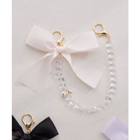 大きなサテンリボンとクリアビーズのチェーンが大人可愛いデザイン♪