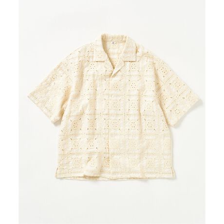 薄手のローンのタイル柄の刺繍を施した総柄刺繍のシャツ。