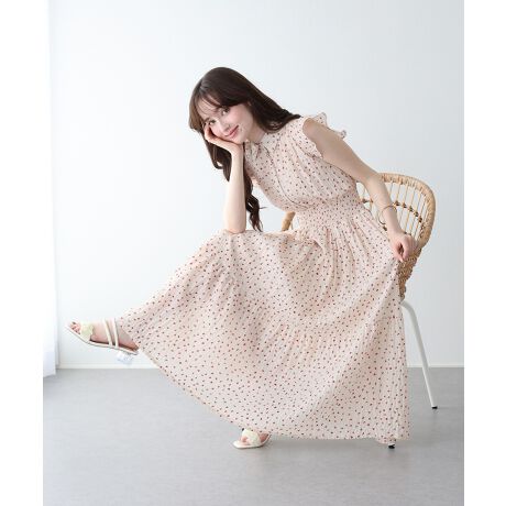 シフォンプリントフリルワンピース