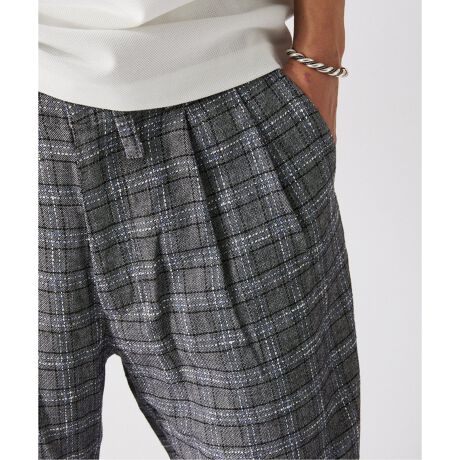 ざっくりとした風合いとドビー調のペーンが特徴的な生地を、2タックデザインのワイドパンツが登場。