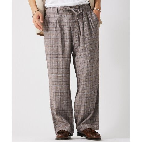 ざっくりとした風合いとドビー調のペーンが特徴的な生地を、2タックデザインのワイドパンツが登場。