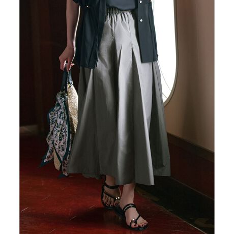 フレアシルエットが女性らしさを演出してくれるスカート。たっぷりとボリュームを持たせた裾の動きに合わせて軽やかに広がります。ウエストはゴム仕様で穿き心地もよく、腰回りをすっきりと見せてくれる絶妙な分量感のギャザーに仕上げています。合わせるトップス次第でシーズンレスに着用いただける万能スカートです。カラーはベーシックなブラック(#005)、グレー寄りのカーキ(#054)、ナチュラルなベージュ(#033)、ニュアンス感のあるダークブラウン(#035)の4色展開です。