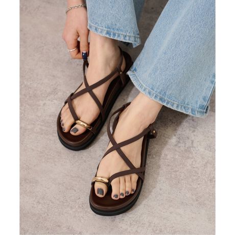 細めのストラップと親指のリングデザインは、大人なこなれ感のある印象に◎