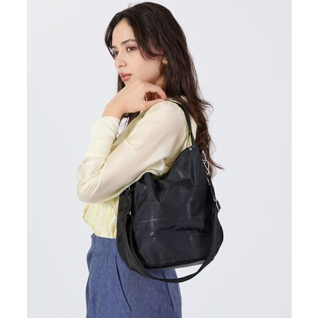 「LeSportsac」の文字でラインを表現したクラシカルでさりげないチェック柄。ブラック(黒)ベースに、ロゴは同色のシルクスクリーンプリント。シンプルなデザインでユニセックスアイテムとしてもおすすめです。