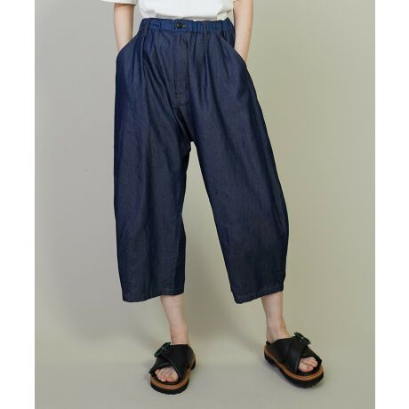 【素材】軽さと適度な光沢感が特徴のライトオンスのデニム素材をブリーチによって4段階に色を落とした素材を組み合わせたアイテム。【デザイン】股上が深めでリラックスしたドレープ感が特徴のサルエルパンツは長過ぎない着丈で軽やかな印象もつくっています。*こちらの商品はユニセックス商品です。【ブランド情報】FRAPBOIS/フラボア2001年にブランドスタート。「大人げない大人の服」をコンセプトに、大人が着るリラックスしたデイリーウェアを提案するコレクションブランド。レディースとメンズのアイテムをご用意しています。https://frapbois.jp