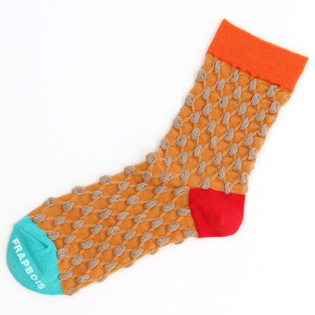 【素材】肌触りの良い糸を使ったソックス。【デザイン】立体的な凹凸感が特徴の柄は柄の部分が飛び出たような不思議な表面が特徴的。Fサイズ:22.5〜24.5cm【ブランド情報】FRAPBOIS/フラボア2001年にブランドスタート。「大人げない大人の服」をコンセプトに、大人が着るリラックスしたデイリーウェアを提案するコレクションブランド。レディースとメンズのアイテムをご用意しています。https://frapbois.jp