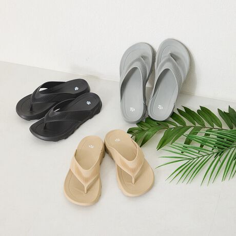 凹凸を付けたソールデザインでメンズライクに仕上げたトングサンダル。程よく弾力のある軽量ソールで足への負担が少なく、