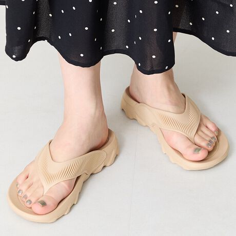 凹凸を付けたソールデザインでメンズライクに仕上げたトングサンダル。程よく弾力のある軽量ソールで足への負担が少なく、